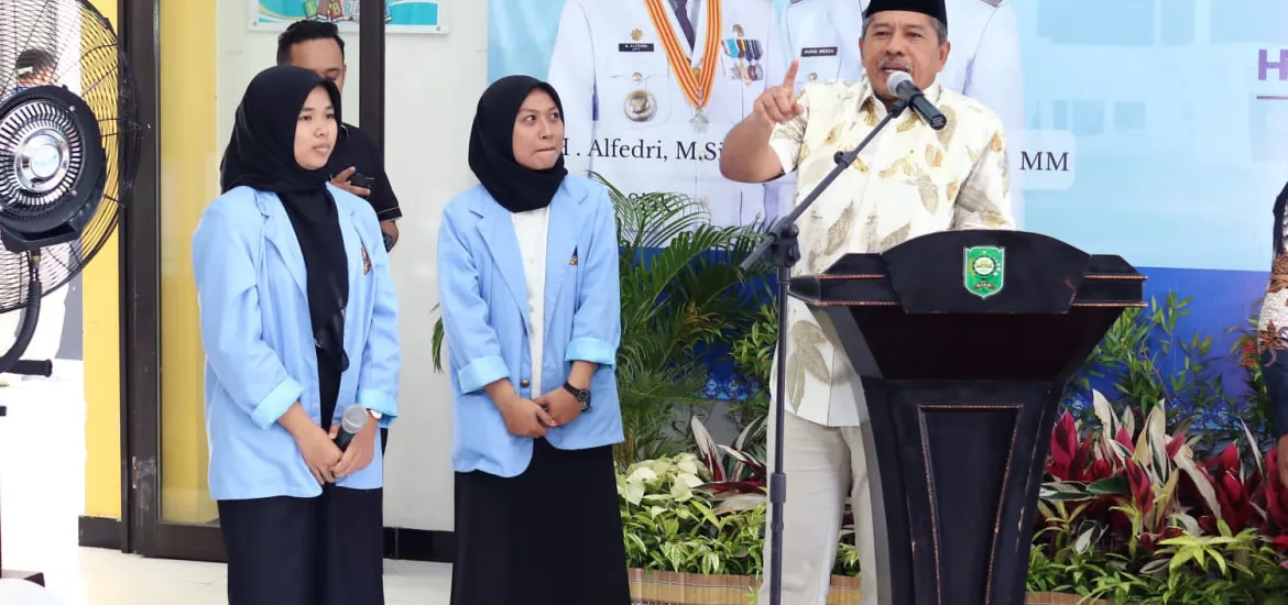 Bupati Alfedri menyemangati 67 mahasiswa PSDKU Polsri yang 90 persen diantaranya merupakan penerima beasiswa Program Keluarga Harapan (PKH) Pemerintah dan Baznas.