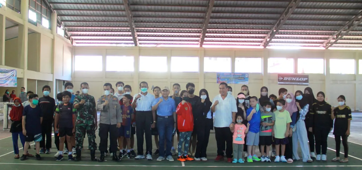 Sekretaris Daerah Provinsi Bengkulu Hamka Sabri membuka secara resmi Kejuaraan Tenis STB CUP-1 2021 di Lapangan Tennis Indoor Pemprov Bengkulu, Jumat (24/12/2021). Kejuaraan ini digelar dalam rangka HUT ke – 1 Sekolah Tenis Bengkulu (STB). (Iraja/Irj600)
