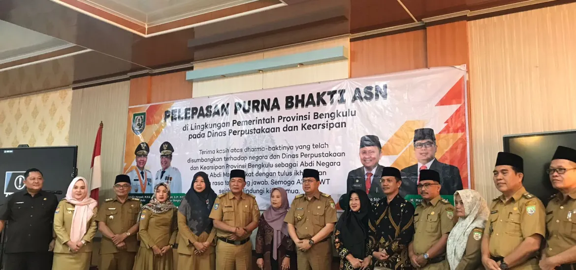 Indonesiaraja.com, Bengkulu - Dinas Perpustakaan dan Kearsipan Provinsi Bengkulu mengadakan kegiatan Pelepasan Purna Bhakti Aparatur Sipil Negara (ASN) di lingkungan Pemerintah Provinsi (Pemprov) Bengkulu yang bertempat di Aula Dinas Perpustakaan dan Kearsipan.