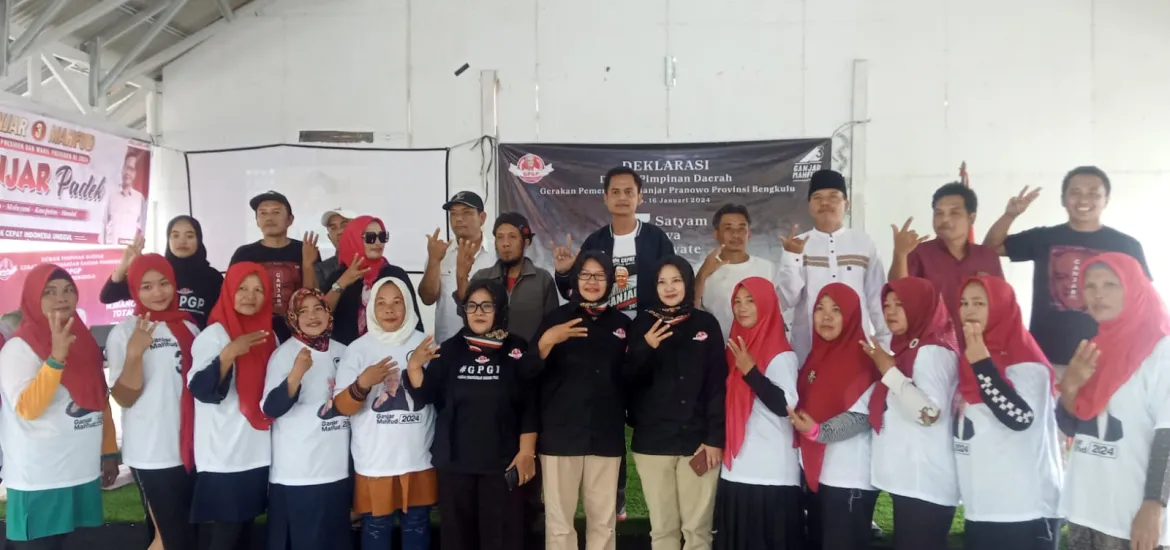 Indonesiaraja.com, Bengkulu - Gerakan Pemenang Ganjar Pranowo (GPGP) Provinsi Bengkulu gelar Deklarasi Dewan Pimpinan Daerah (DPD) dengan tema Gerak Cepat Menuju Indonesia Unggul yang diselenggarakan di Bufet Tris Pantai Panjang Kota Bengkulu, Selasa (16/01/2024).