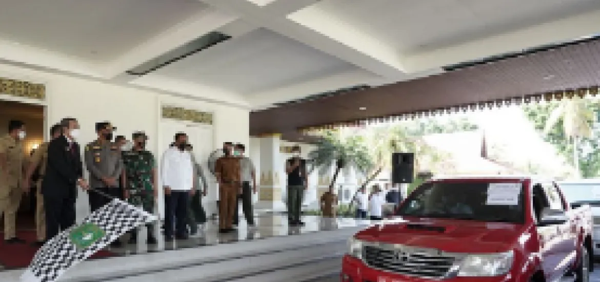 Indonesiaraja.com, Pekanbaru - Gubernur Riau Syamsuar melepas mobil siaga penanganan wabah Penyakit Mulut dan Kuku (PMK). Mobil ini untuk mendistribusikan vaksin sekaligus obat-obatan bagi hewan seperti sapi, kerbau dan kambing yang terdampak wabah PMK ataupun hewan yang sehat pendistribusian disebarkan di kabupaten dan kota se Provinsi Riau, Senin (27/6/22).