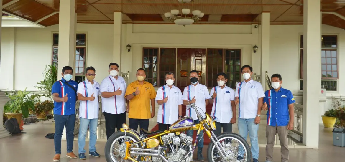 Indonesiaraja.com, Pekanbaru - Gubernur Riau (Gubri) mendukung kreativitas anak bangsa sektor otomotif dengan ikut meluncurkan produk kreatif motor custom bertema nuansa melayu, di laman Kediaman Gubernur, Rabu (30/3/2022).