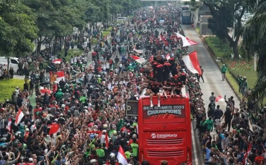 Indonesiaraja.com, Jakarta - PSSI mengadakan arak-arakan Timnas U-22 dan Juara SEA Games 2023 GBK Se