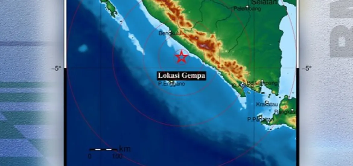 Pusat gempa di Bengkulu terjadi di laut, 37 Km Barat Daya Bengkulu Selatan.Titik pusat gempa berada pada kedalaman 32 Km.