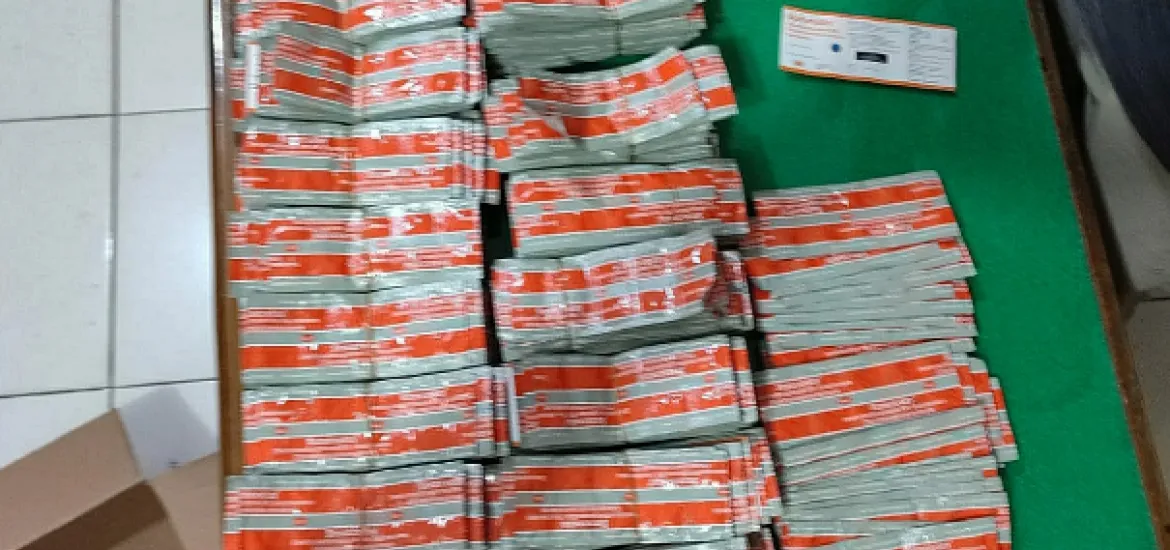 Saat dilakukan penggeledahan petugas menemukan barang bukti berupa 500 keping obat batuk merek Samcodin dengan setiap keping berisi 10 butir obat, dengan keseluruhan 5000 butir obat Samcodin ilegal.