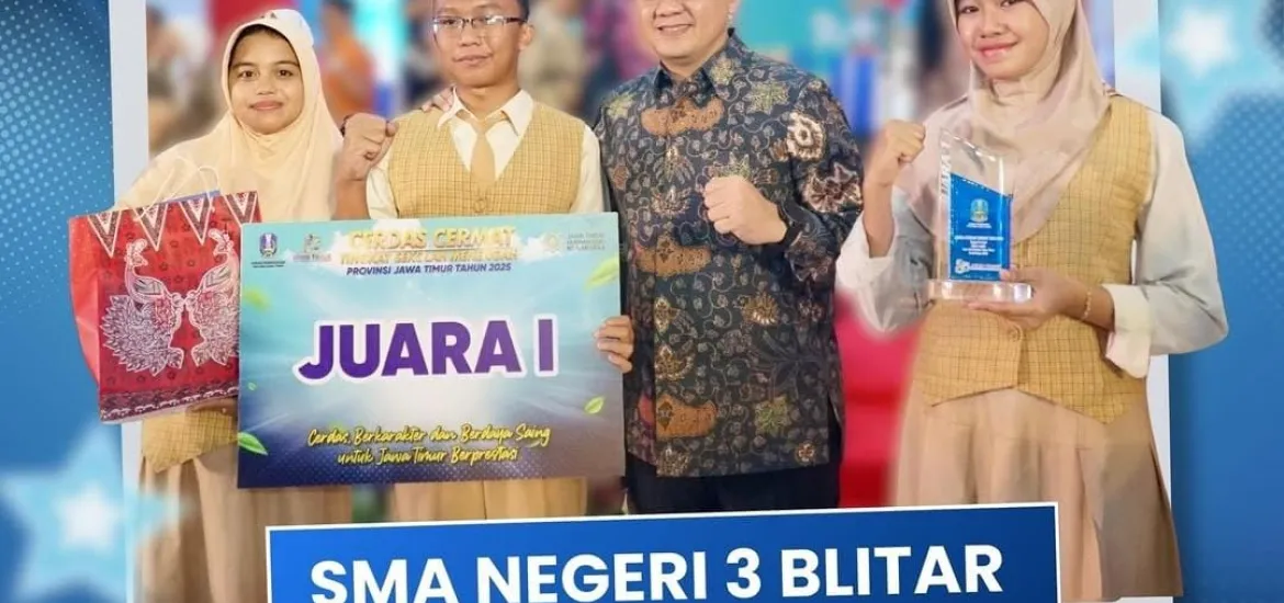 Indonesiaraja.com, Blitar - SMAN 3 Kota Blitar kembali menorehkan prestasi gemilang di tingkat provinsi. Sekolah ini berhasil meraih juara 1 Lomba Cerdas Cermat tingkat Sekolah Menengah Atas se-Jawa Timur yang diselenggarakan oleh Dinas Pendidikan Provinsi Jawa Timur dalam rangka memperingati Hari Jadi Provinsi Jawa Timur ke-80 tahun 2025.