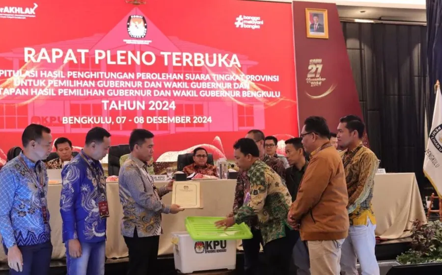 Indonesiaraja.com, Bengkulu - Rapat pleno rekapitulasi perhitungan surat suara pilkada 2024 yang dig