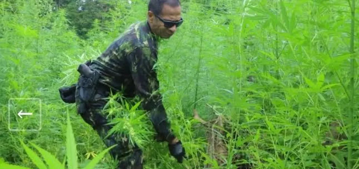 Sesampainya Di kebun milik HB petugas gabungan menemukan tanaman ganja dengan tinggi 1-2 meter dan ada dua batang yang sudah ditebang untuk dikeringkan.