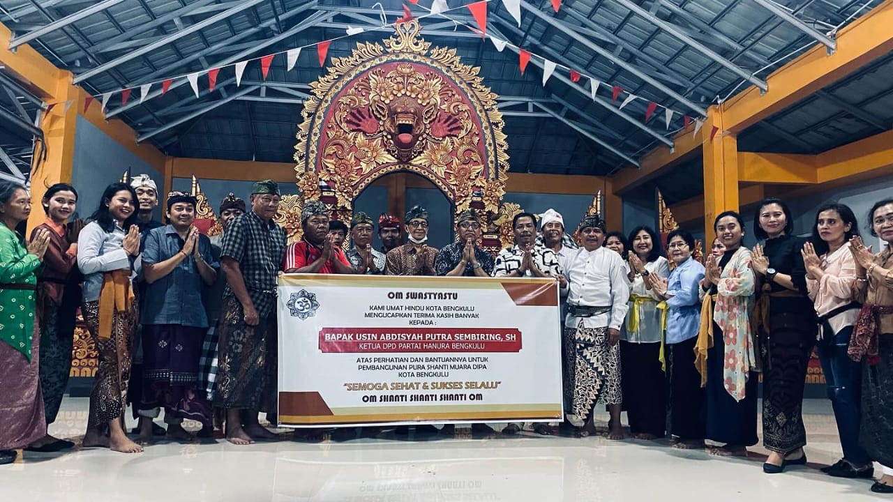 Indonesiaraja.com, Bengkulu - Usin Abdisyah Putra Sembiring,S.H, selaku Ketua DPD Partai Hanura Bengkulu bersama pengurus Parisada Hindu Dharma Indonesia (PHDI) Provinsi Bengkulu dan Pengurus Kota Bengkulu bersilaturahmi bersama di Banjar Pura Shanti Muara Dipa Kota Bengkulu, Minggu 19/11/23.