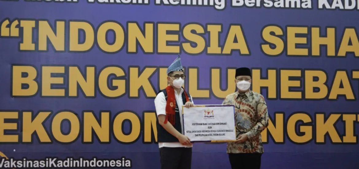 Dalam kegiatan itu, Ketua Umum KADIN Arsjad Rasjid menyerahkan secara simbolis bantuan vaksin kepada Pemprov Bengkulu yang diterima langsung oleh Gubernur Bengkulu Rohidin Mersyah.