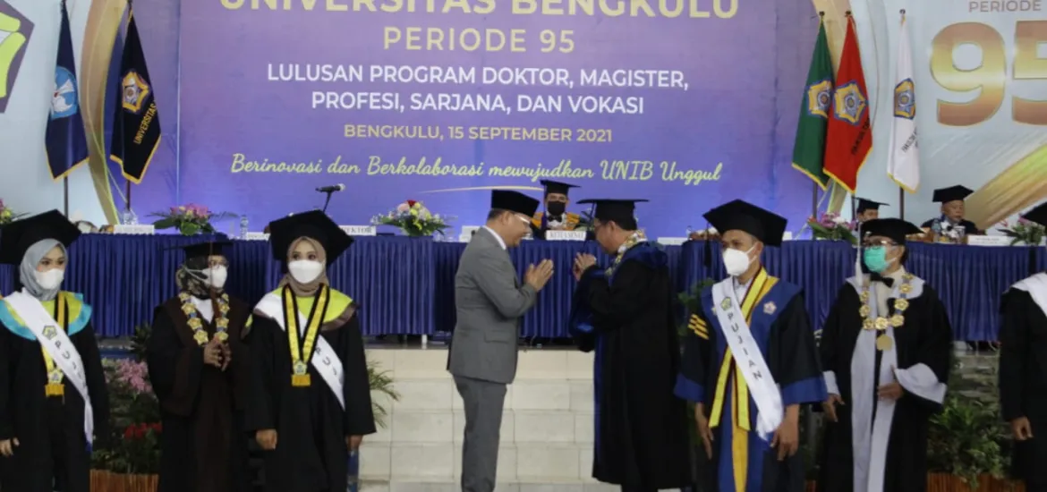 Indonesiaraja.com, Bengkulu - Gubernur Bengkulu Rohidin Mersyah menghadiri Wisuda Daring Periode ke-95 Lulusan Pasca Sarjana, Profesi, Sarjana dan Vokasi Universitas Bengkulu, di Gedung Serbaguna Universitas Bengkulu, Rabu (15/9).