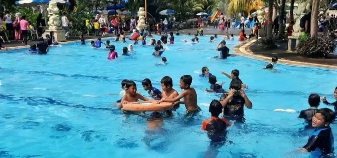 Kolam Renang Tirta Putri Serindang Bulan Padat Pengunjung Menjelang Akhir Liburan Nataru
