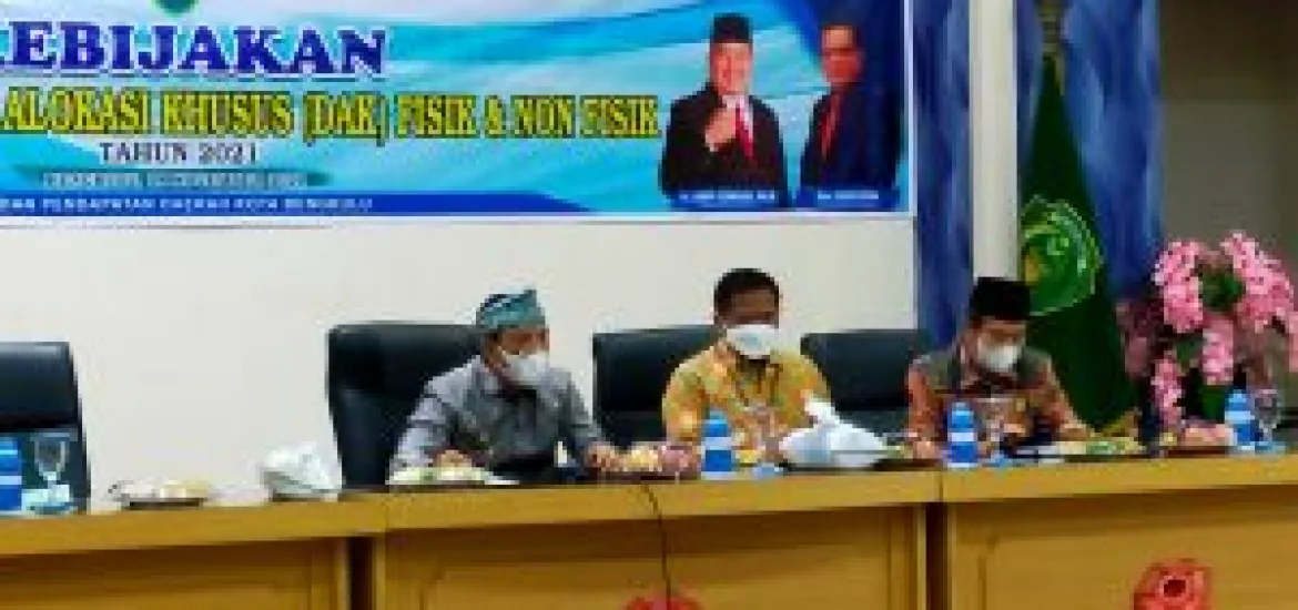 Rapat ini digelar dalam rangka evaluasi penyerapan dana alokasi khusus di lingkup Kota Bengkulu, terkhususnya di Dinas Pendidikan dan Dinas Kesehatan.