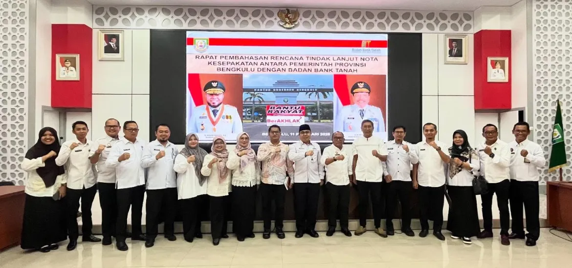 Indonesiaraja.com, Bengkulu - Pemerintah Provinsi Bengkulu resmi menjalin kemitraan strategis dengan Badan Bank Tanah melalui penandatanganan nota kesepahaman (MoU) yang berlangsung di Hotel Sari Pacific Jakarta pada Selasa (13/1). Kerja sama ini difokuskan pada pemanfaatan lahan bekas Hak Guna Usaha (HGU) sebagai sumber pertumbuhan ekonomi baru daerah.