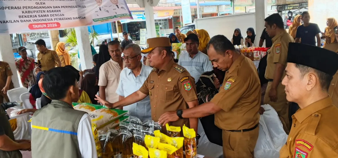 Indonesiaraja.com, Asahan – Pemerintah Kabupaten Asahan melalui Dinas Koperasi, Perdagangan dan Perindustrian (Kopdagin) menggelar kegiatan pasar murah di enam lokasi berbeda sebagai upaya membantu masyarakat memperoleh kebutuhan pokok dengan harga terjangkau. Kegiatan ini dilaksanakan dalam rangka menyambut Hari Raya Idul Fitri, Imlek, sekaligus memeriahkan Hari Ulang Tahun (HUT) ke-80 Kabupaten Asahan Tahun 2026, dan secara resmi dibuka oleh Wakil Bupati Asahan, Rianto, S.H., M.AP.