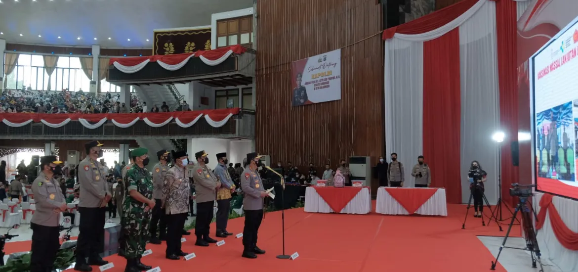 “Tentunya dalam kesempatan ini saya ucapkan terima kasih, apresiasi atas kerja keras kerja sama dari TNI-Polri dan seluruh Pemda baik Provinsi, kotamadya maupun kabupaten yang terus bekerja sama membantu percepatan program akselerasi vaksinasi nasional,” kata Sigit.