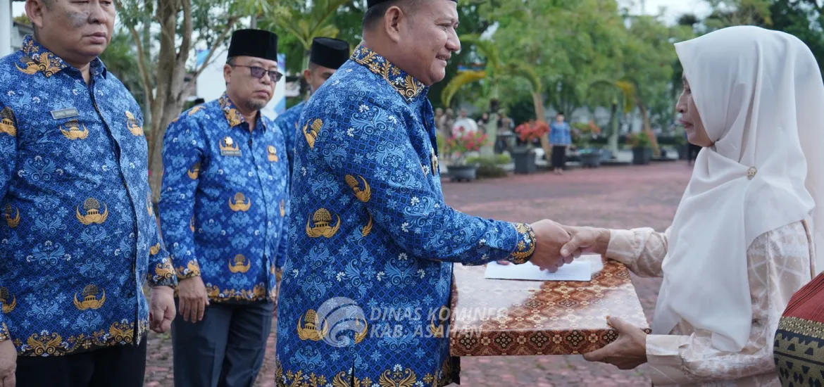 Sebelum menyampaikan amanat, Wakil Bupati Asahan menyerahkan penali asih kepada ASN yang memasuki masa pensiun.