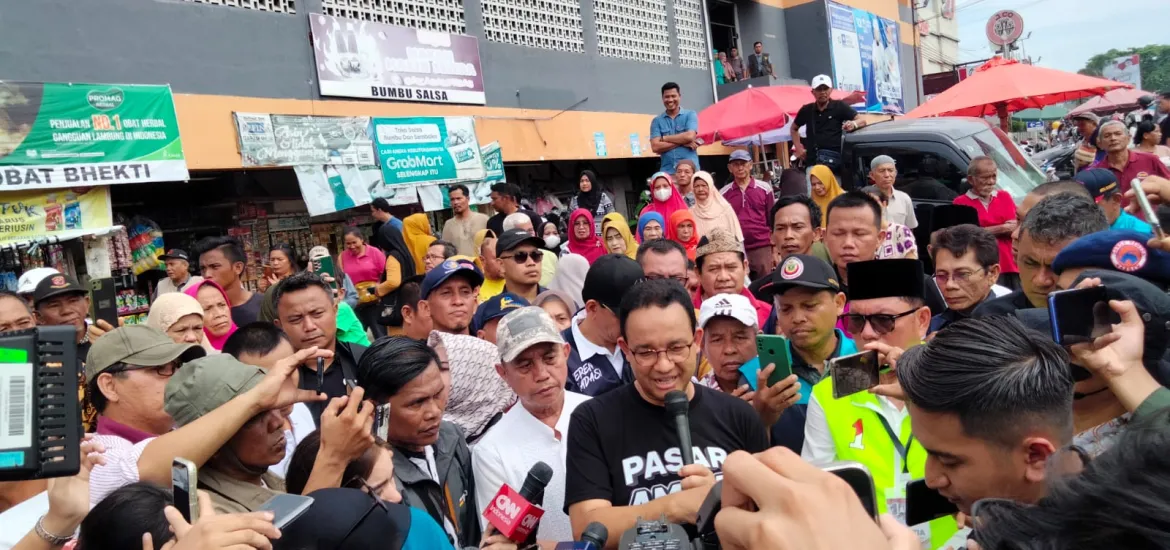 Salah satu target kunjungan Anies Baswedan di Kota Bengkulu yakni mengelilingi salah satu yakni pasar tradisional yang berada di daerah Sentiong untuk menyapa para pedagang dan memantau harga pasaran sembako yang saat ini masih melambung tinggi.
