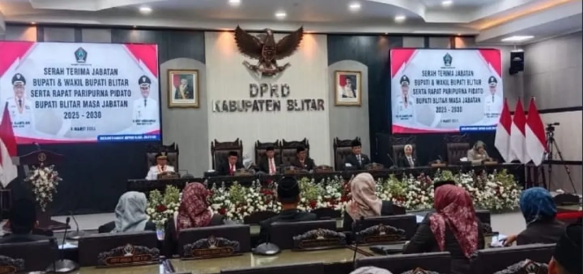 Indonesiaraja.com, Jawa Timur - Dewan Perwakilan Rakyat Daerah (DPRD) Kabupaten Blitar menggelar Rapat Paripurna dalam rangka serah terima jabatan (Sertijab) Bupati dan Wakil Bupati Blitar periode 2025-2030. Acara ini berlangsung di Graha Paripurna DPRD Kabupaten Blitar, pada Selasa (04/03/25).