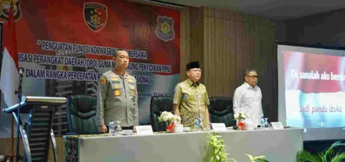 Indonesiaraja.com, Bengkulu – Bareskrim Polri dan Polda Bengkulu menggelar kegiatan dalam rangka memperkuat jalinan sinergi antara instansi Bersama Polri, dan penguatan funsi Korwasbin Penyidik Pegawai Negeri Sipil (PPNS) Bersama Organisasi Perangkat Daerah (OPD) dalam rangka percepatan pembangunan nasional. Pada hari Kamis (22/06/2023) di Mercure Hotel Bengkulu, dan dihadiri oleh Gubernur Bengkulu Rohidin Mersyah