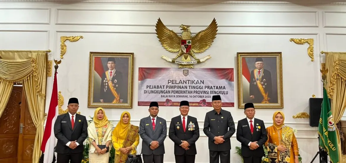 Indonesiaraja.com, Bengkulu - Gubernur Bengkulu, Rohidin Mersyah melantik 3 Pejabat Eselon II di lingkungan Pemda Provinsi Bengkulu di Balai Raya Semarak Bengkulu, Senin (16/10/2023).