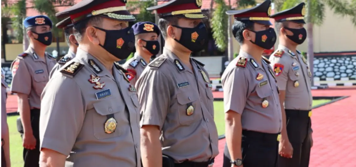 Menerapkan protokol kesehatan ditengah pandemi covid-19, kegiatan kemudian dilanjutkan dengan pemberian ucapan selamat untuk 33 Anggota Polres dan Brimob dengan tetap menjaga jarak selama beraktivitas.