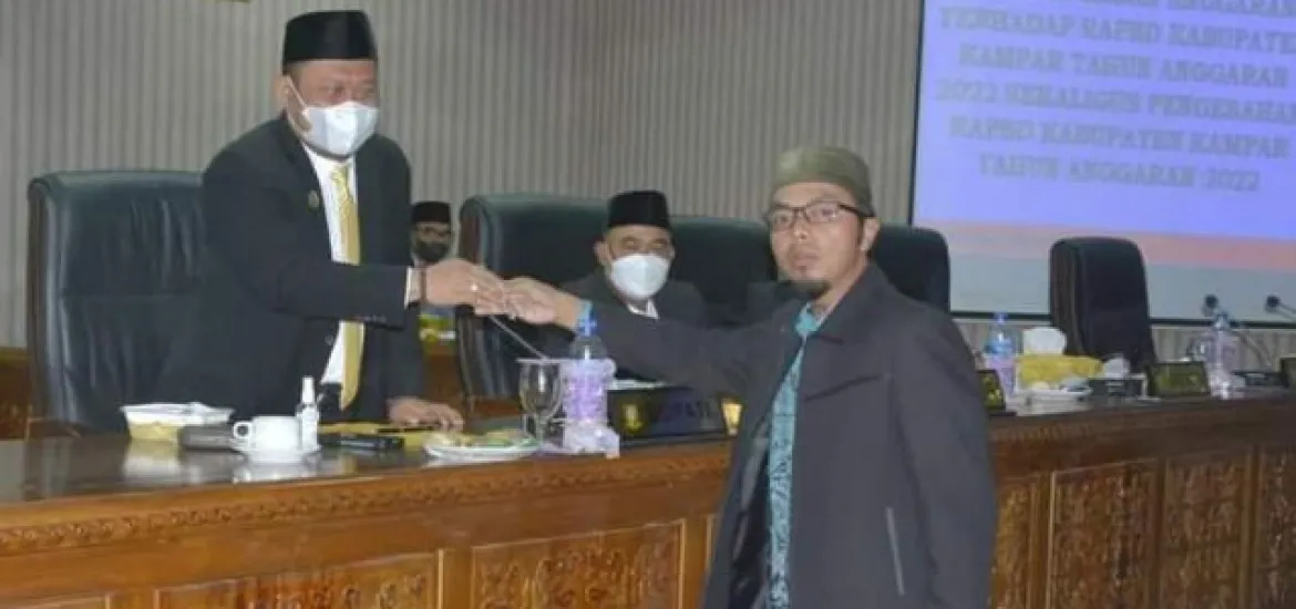 Indonesiaraja.com, Kampar - Dewan Perwakilan Rakyat Daerah (DPRD) Kabupaten Kampar mengesahkan Anggaran Pendapatan dan Belanja Daerah (APBD) Kabupaten Kampar tahun anggaran 2022 pada rapat paripurna DPRD Kabupaten Kampar, Senin (29/11/2021).