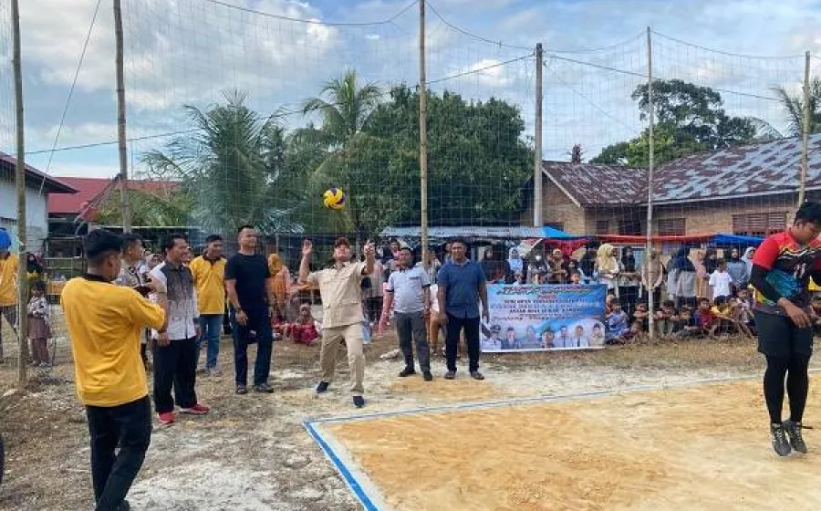 Ketua DPRD Kampar Servis Bola Dalam Semi Open Turnamen Bola Volly Pauh Muda Club Cup 2