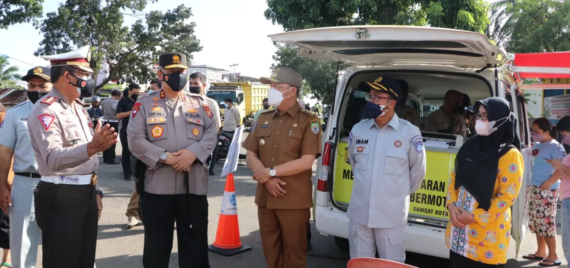 Indonesiaraja.com,Bengkulu - Kapolda Bengkulu Irjen Pol Drs. Guntur Setyanto, M.Si., bersama Gubernur Bengkulu Dr. H. Rohidin Mersyah pagi ini (04/11/21) memantau pelaksanaan penertiban kepatuhan pajak yang digelar oleh Gabungan Personil TNI – Polri dan Jasa Raharja di Simpang 4 Nakau Kota Bengkulu.