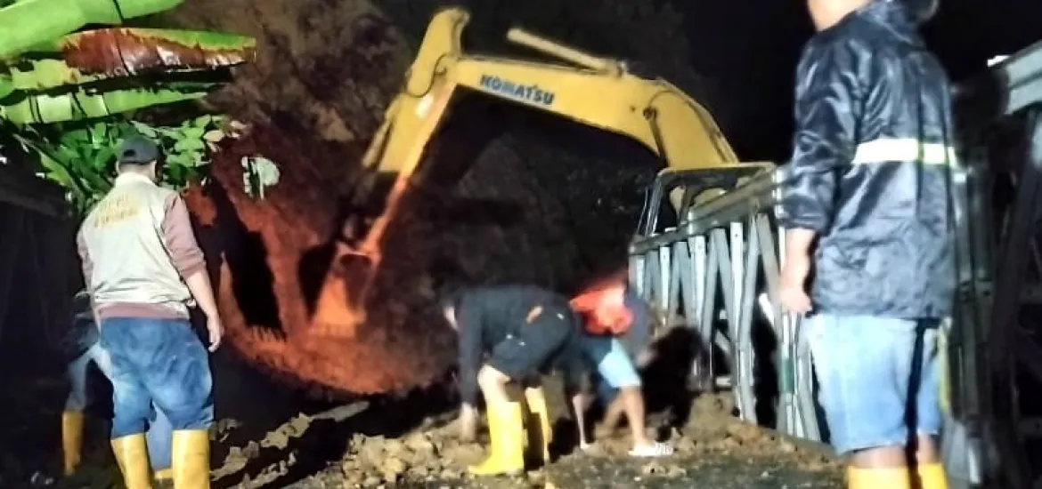 Pihaknya bersama instansi terkait mengerahkan alat Excavator dari BPJN untuk mengevakuasi tanah longsor Tersebut.
