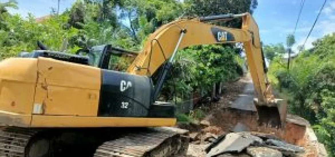 Di lokasi longsor tepatnya di jalan hibrida 13 menuju ke arah kelurahan sumur dewa, sudah terlihat alat berat jenis ekskavator bekerja untuk mengondisikan material longsoran yang menghubungkan jalan pemukiman setempat.