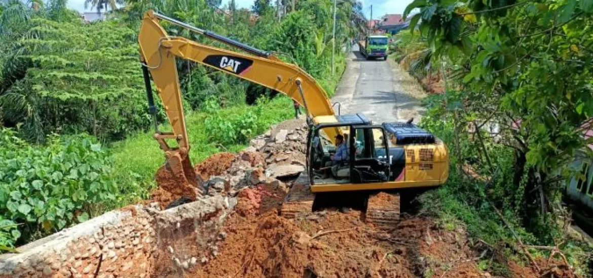 Sabtu siang dilokasi longsor tepatnya jalan hibrida 13 menuju ke arah kelurahan sumur dewa, sudah terlihat alat berat jenis ekskavator bekerja digunakan untuk mengondisikan material longsoran yang menghubungkan jalan pemukiman setempat.