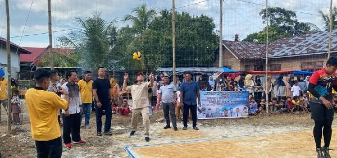 Ketua DPRD Kampar Servis Bola Dalam Semi Open Turnamen Bola Volly Pauh Muda Club Cup 2