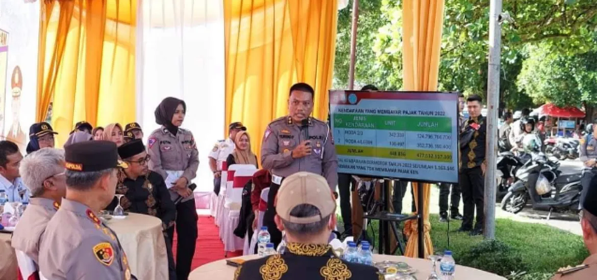 Pada tahun lalu 2022 realisasi PKB (Pajak Kendaraan Bermotor) mencapai 108 persen dengan rincian terealisasi 294.507.180.100 dari target 271.056.956.000. Dan realisasi BBNKB (Bea Balik Nama Kendaraan Bermotor) mencapai 113 persen 183.099.370 dari target 161.478.628