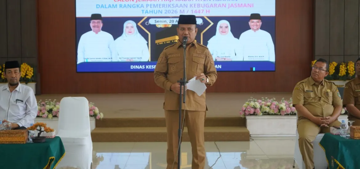 Indonesiaraja.com, Asahan — Pemerintah Kabupaten Asahan melalui Dinas Kesehatan melaksanakan kegiatan pemeriksaan kebugaran jasmani bagi Jemaah Calon Haji Tahun 2026 M/1447 H. Kegiatan ini berlangsung di Pendopo Rumah Dinas Bupati Asahan, Senin (20/04/2026), sebagai bagian dari persiapan kesehatan sebelum keberangkatan ke Tanah Suci.