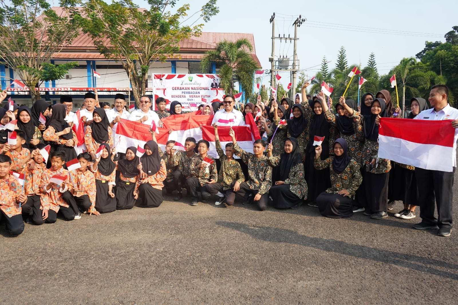 Indonesiaraja.com, Bengkulu - Pemerintah Kota (Pemkot) Bengkulu memulai Gerakan Pembagian Bendera Merah Putih Tahun 2024 untuk masyarakat. Kegiatan ini dilaunching langsung oleh Penjabat (Pj) Walikota Bengkulu Arif Gunadi di kantor Walikota, ditandai dengan pemberian bendera secara simbolis untuk para Kepala OPD, Camat, jajaran Pemkot dan siswa-siswi.