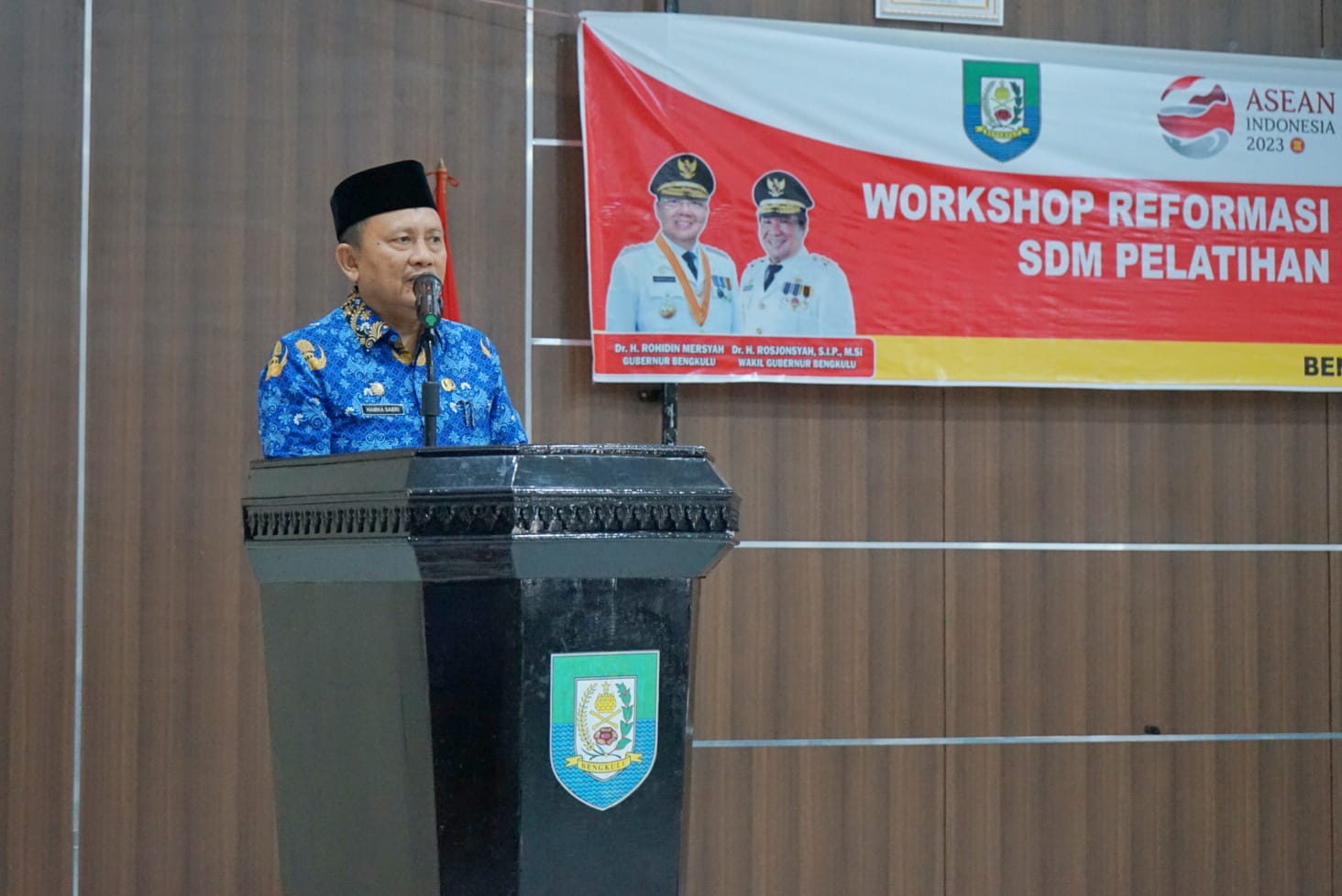 Indonesiaraja.com, Bengkulu - Workshop Reformasi Budaya Kerja dan Agen Perubahan SDM Pelatihan yang digelar Badan Pengembangan Sumber Daya Manusia Provinsi Bengkulu yang dibuka langsung oleh Sekda Hamka Sabri membuka di Aula Rafflesia BPSDM, Senin (17/7/23).
