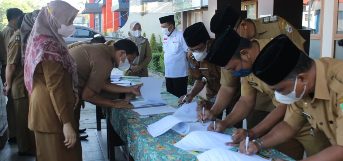 Usai Apel Pagi, Sekda Hamka Sabri juga menyaksikan Penandatanganan Perjanjian Kinerja Pejabat Eselon III dan Eselon IV/Sub Koordinator Fungsional di Lingkungan Dinas Dukcapil Provinsi Bengkulu.