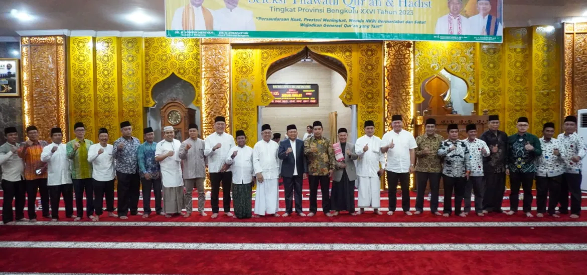 Indonesiaraja.com, Bengkulu - Pemerintah Provinsi (Pemprov) bersama Keme terian Agama (Kemenag) Provinsi Bengkulu melaksanakan seleksi Tilawatil Qur’an dan Hadis tingkat provinsi Bengkulu di Masjid Raya Baitul Izzah Bengkulu. Dalam rangka persiapan mengikuti Seleksi Tilawatil Qur’an dan Hadis Tingkat Nasional ke XXVI yang akan digelar di Provinsi Jambi pada akhir Oktober ini, Rabu (12/07/23).