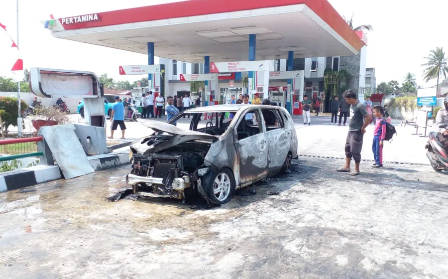 Indonesiaraja.com, Bengkulu - 1 Unit mobil hangus terbakar usai mengisi bensin disalah satu SPBU Gad