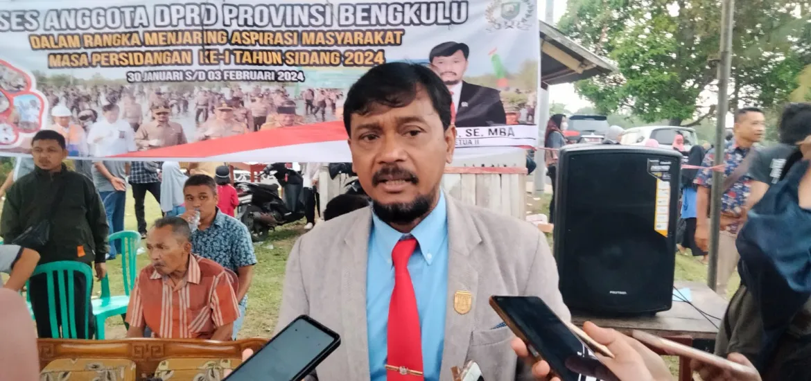 Indonesiaraja.com, Bengkulu - Waka II DPRD Provinsi Bengkulu, Suharto, SE., MBA., gelar reses dalam rangka menjaring aspirasi masyarakat masa persidangan ke 1 tahun 2024 yang dilaksanakan di lapangan Timur Indah Kelurahan Sidomulyo pada Rabu (31/01/2024).