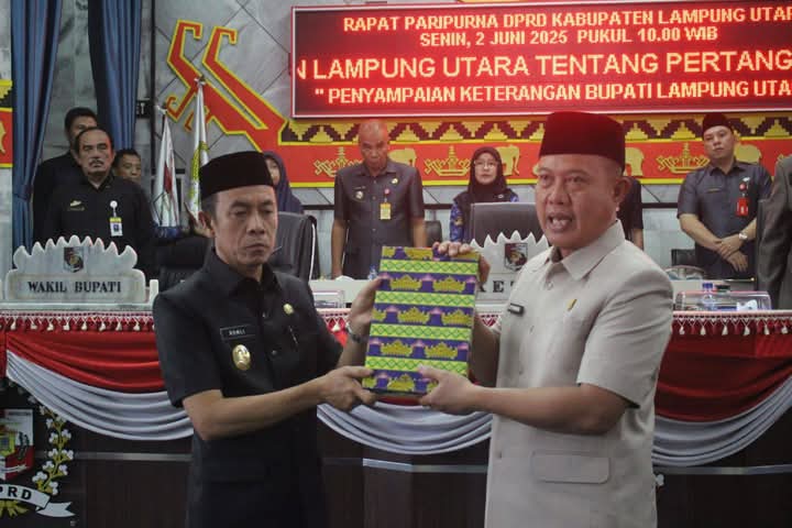 Indonesiaraja.com, Lampung - Wakil Bupati Lampung Utara, Romli, S.Kom., S.H., M.H., menghadiri Rapat Paripurna Dewan Perwakilan Rakyat Daerah (DPRD) Kabupaten Lampung Utara yang digelar pada Senin (2/6) dengan agenda utama Penyampaian Laporan Keterangan Pertanggungjawaban (LKPJ) atas pelaksanaan Anggaran Pendapatan dan Belanja Daerah (APBD) Tahun Anggaran 2024.
