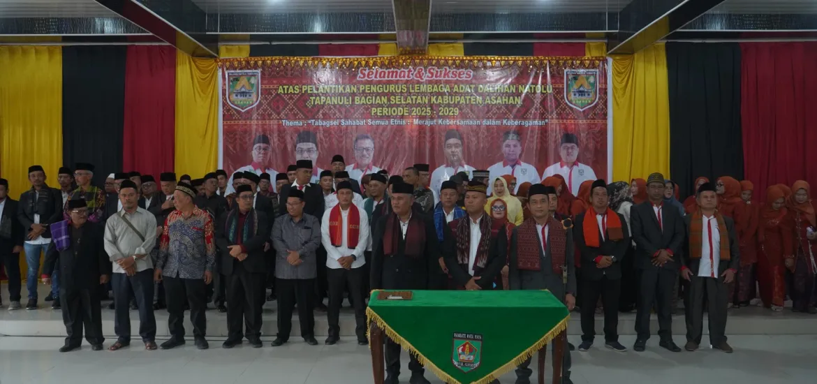 Indonesiaraja.com, Asahan – Pelantikan Pengurus Lembaga Adat Dalihan Natolu Tapanuli Bagian Selatan (Tabagsel) Kabupaten Asahan periode 2025–2029 berlangsung khidmat sebagai momentum memperkuat persatuan, menjaga nilai-nilai budaya, serta merawat kebersamaan di tengah masyarakat yang majemuk. Kegiatan ini mengusung tema “Tabagsel Sahabat Semua Etnis, Merajut Kebersamaan dalam Keberagaman.”