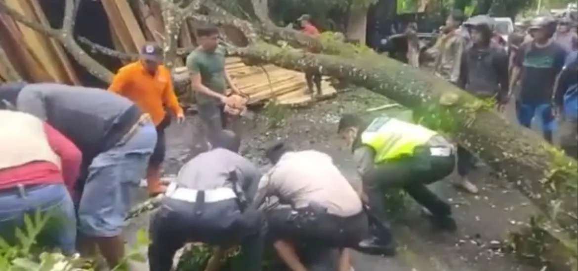 ” kejadiannya kemarin sore ( kamis, 13/01/22 ) , pohon tumbang diperkirakan diakibatkan oleh curah hujan tinggi.” Ungkap Kapolres Kepahiang.