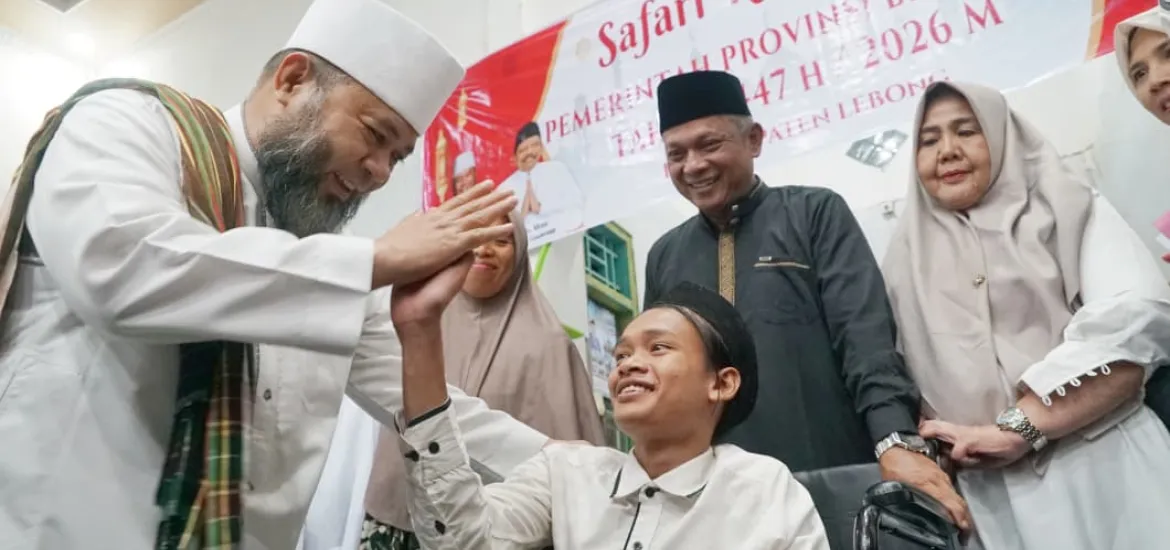 Indonesiaraja.com, Bengkulu - Safari Ramadan Pemerintah Provinsi Bengkulu kembali menyapa masyarakat Kabupaten Lebong. Kali ini, Gubernur Bengkulu, Helmi Hasan, melaksanakan Safari Ramadan di Masjid Al Amin, Desa Sukabumi, Kecamatan Lebong Sakti, Jumat (27/2).