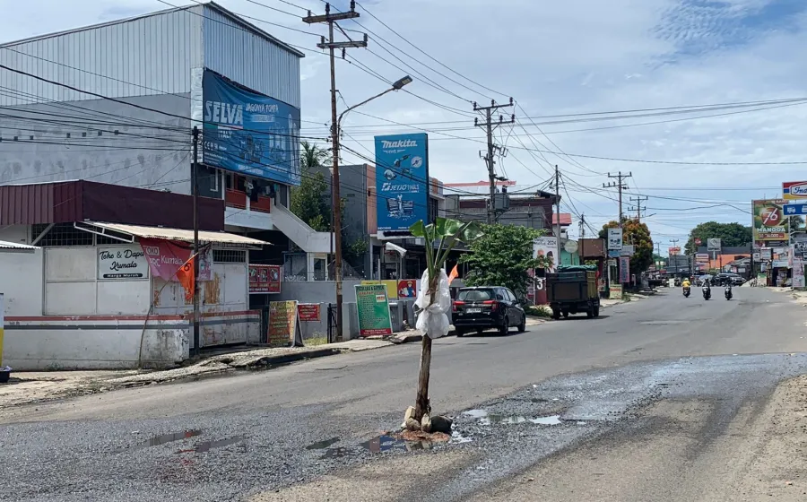 Protes Jalan Berlobang, Warga Tanam Pohon Pisang Ditengah Jalan