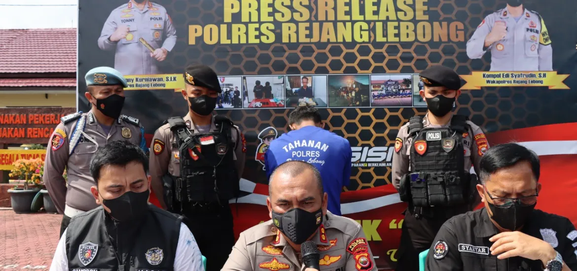 Kapolres RL AKBP Tonny S.Ik., didampingi Kasat Reskrim AKP Samson Sosa dan Kasie Humas AKP Syahyar dalam releasenya kemarin (25/03/22) mengungkapkan, tersangka yang berhasil ditangkap pihaknya terkait aksi curanmor di Air Putih tersebut yakni berinisial DS (25) warga Desa Sumber Bening Kec. Selupu Rejang Kab. Rejang Lebong.