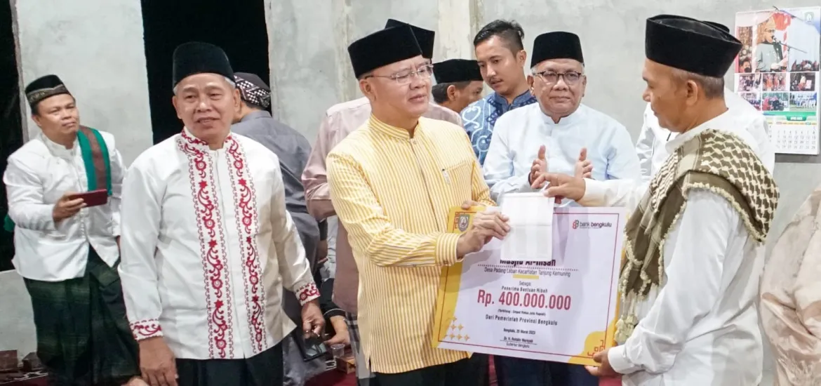 "Tadi kita juga menyerahkan beberapa paket bantuan, terkait dengan pembangunan masjid, pembinaan keagamaan maupun organisasi berbasis keagamaan, disamping sekaligus melakukan pembinaan kemasyarakatan memantau agenda-agenda pembangunan kita," jelas Gubernur Rohidin, Sabtu (25/3/2023).